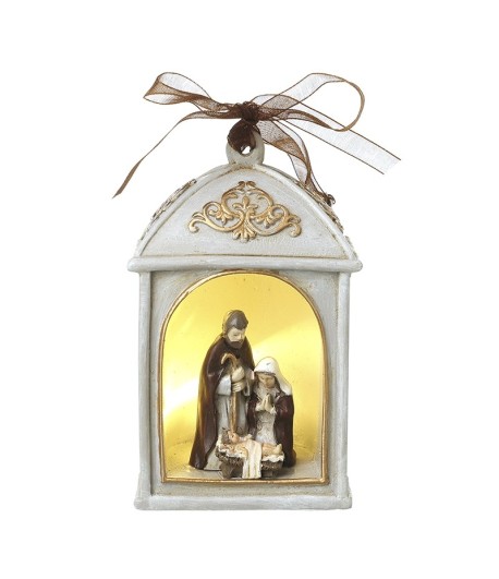 White Resin Led Nativity Hanging Decoration