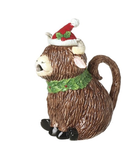 Highland Cow In Santa Hat Tea Pot