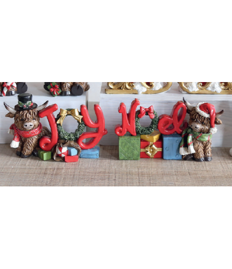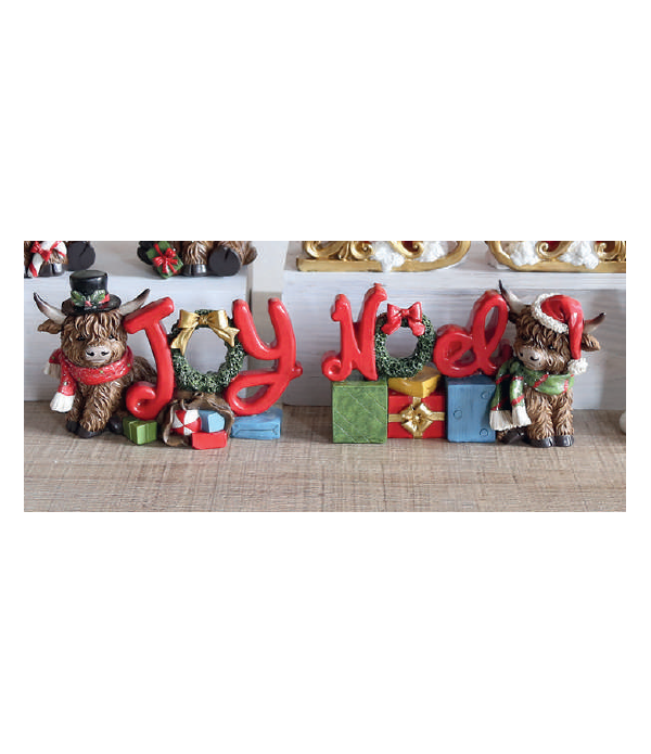 Christmas Highland Cow Joy/Noel 18cm (2 Assorted Designs)