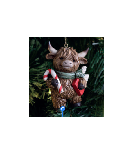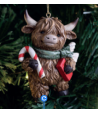 Highland Cow With Candy Cane Tree Decoration  (9cm)
