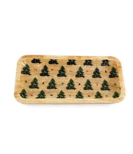 Christmas Mango Wood Enamel Tray 31.5x14.5cm