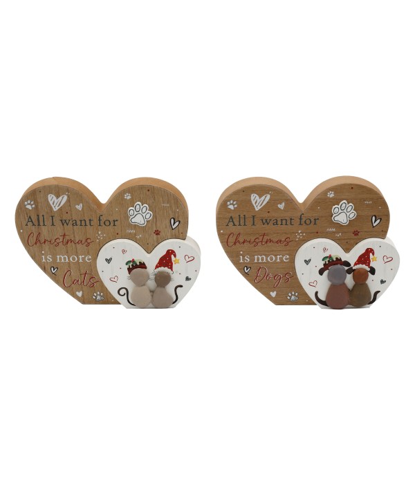 Pebble Cat/Dog Double Heart Plaque (2 Assorted Designs)