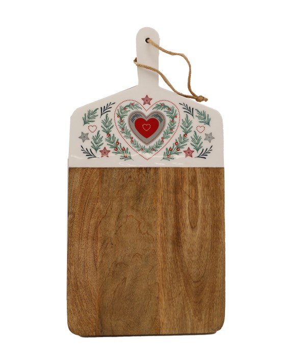 Christmas Heart Enamel Mango Wood Chopping Board
