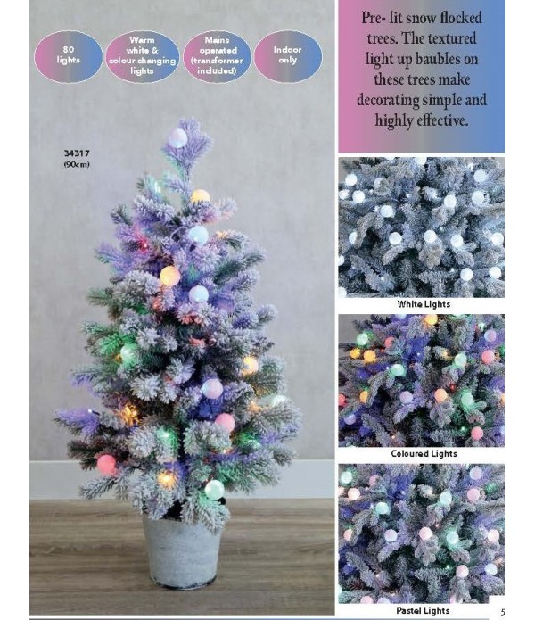 Bring a frosty winter wonderland indoors with this sparkling pre lit artificial snow frosted tree. Decorated with 60 alternating warm white and colour changing lights, this will transform your space to make a festive statement.