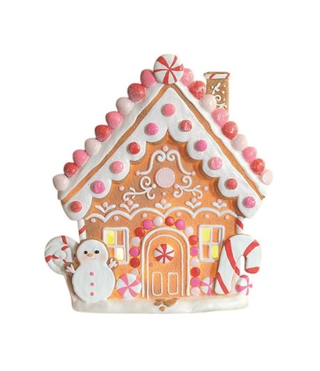 Sweeten up your seasonal décor with this beautiful LED pink gingerbread house, bursting with festive charm and detail. Decorated with a cheerful snowman, striped candy canes, and frosted accents, this delightful decoration is brought to life with warm glowing LED lights. Perfect for tabletops, mantels or Christmas displays.