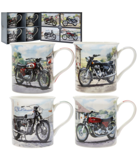 Set of 4 Classic Vintage Motorbikes Fine China Mugs Coffee Cup