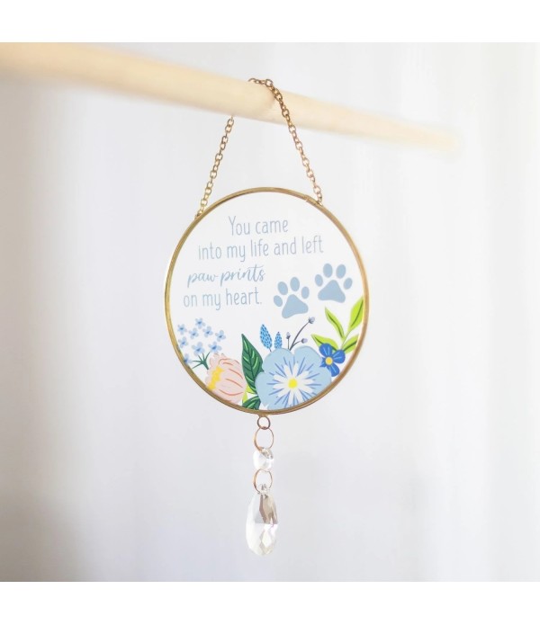 Designed to capture both sunlight and hearts, this charming suncatcher features a delicate paw print motif that sparkles beautifully when touched by light. Perfect for hanging in windows, gardens, or pet-friendly spaces, it radiates warmth and sentiment with every glimmer.
