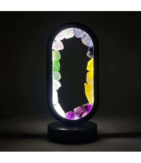 Featuring a curated blend of natural minerals and housed in a sleek oval glass vessel, this captivating lamp emits a warm, ambient glow that adds depth and character to any setting. Whether placed on a shelf, bedside table, or within a thoughtfully styled space, it offers a unique fusion of earthy texture and contemporary design.