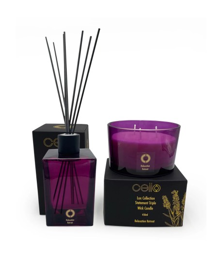 Introducing the Cello Premium Reed Diffuser & 3 Wick Candle Set in Relaxation Retreat. Create a serene sanctuary in your home with this luxurious set, featuring a soothing blend of calming fragrances. The reed diffuser gently disperses the relaxing scent throughout your space, while the 3 wick candle adds a warm and tranquil ambiance. Perfect for unwinding after a long day or as a thoughtful gift for someone in need of relaxation. Elevate your home fragrance experience with the Cello Premium Reed Diffuser & 3 Wick Candle Set today.