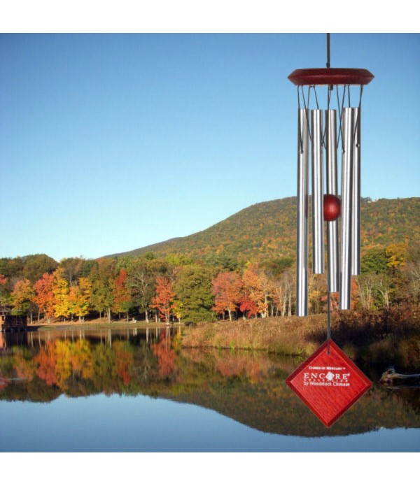 The Encore Chimes of Mercury are made with 5 silver aluminium tubes and ash wood. The smallest of the Encore chimes.