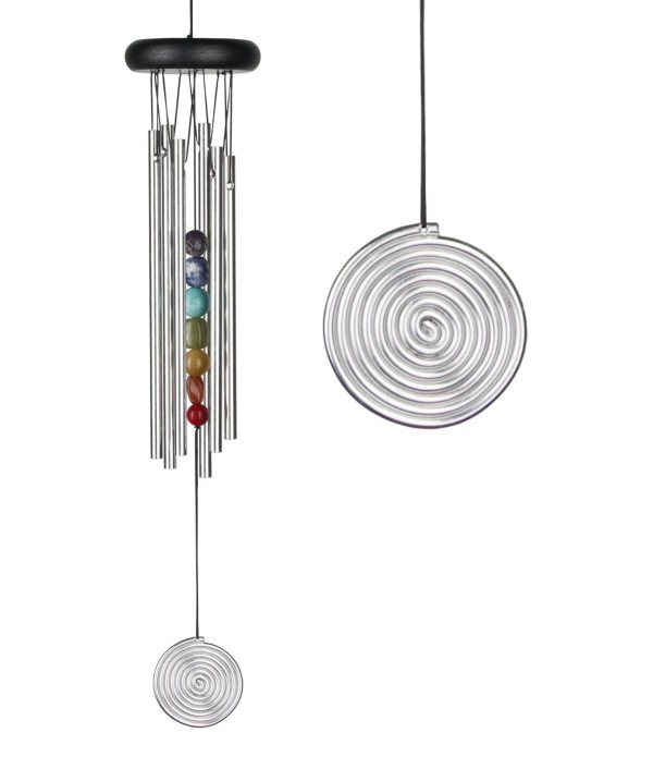 Black finish ash wood and 6 silver polished aluminium rods with genuine stone accents. The seven stones are aligned in an ascending column, just as the seven chakras are aligned along the spine in the human body.