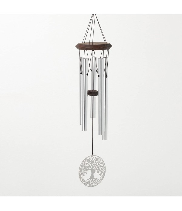 Made With Long-Lasting Materials - This handcrafted, wind-activated wind chime resists most weather conditions. Made of teak finish ash wood, 5 silver aluminum tubes, stainless steel ornament