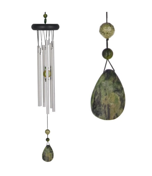 Amethyst represents the Crown Chakra, which is related to thought and self-knowledge. The beautiful windcatcher of each chime is a colorful stone associated with a particular Chakra. Woodstock Chakra Chimes are intended to remind us of the strength of mind over matter and, through sound, give us a small window into the balance of the physical and metaphysical.
