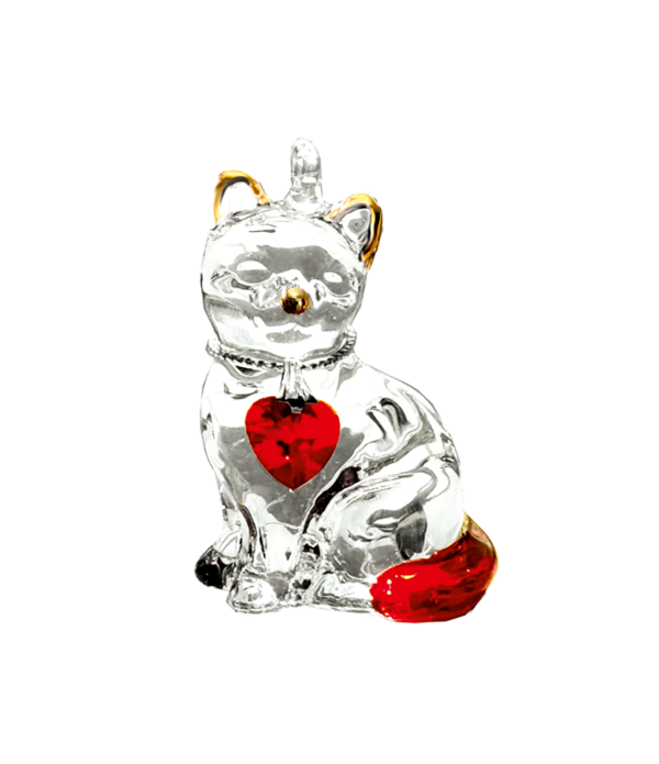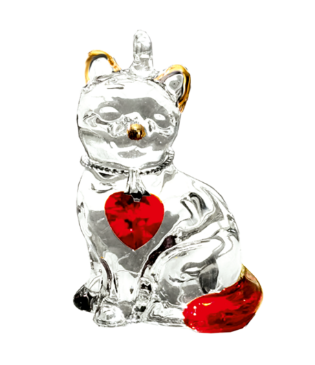 Hand Crafted Pretty Little Kitty Glass. Embellished with a crystal heart and enhanced with 24 carat gold paint. Our Garnet Pretty Little Kitty is a Gift of Friendship. Complete with an illustrated gift box.