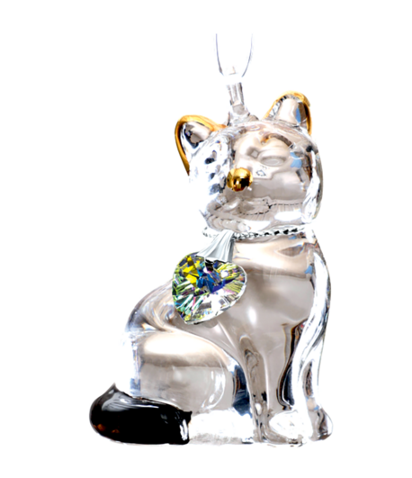 Hand Crafted Pretty Little Kitty Glass. Embellished with a crystal heart and enhanced with 24 carat gold paint. Our Black Pretty Little Kitty is a Gift of Friendship. Complete with an illustrated gift box.