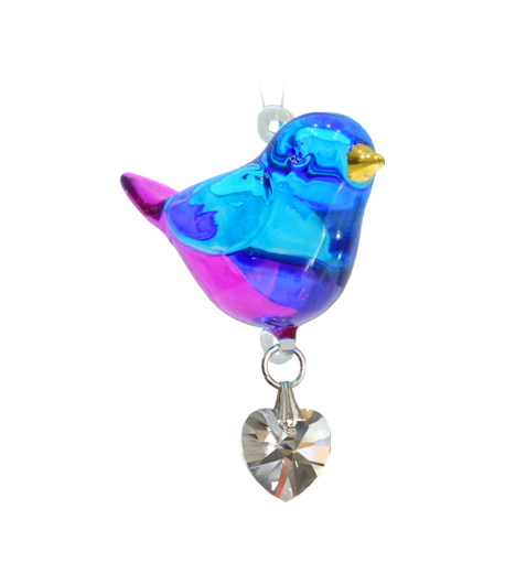 Hand Crafted Pretty Little Bird Glass. Embellished with a crystal heart and enhanced with 24 carat gold paint. Our Evening Song Pretty Little Bird is a Gift of Friendship. Complete with an illustrated gift box.