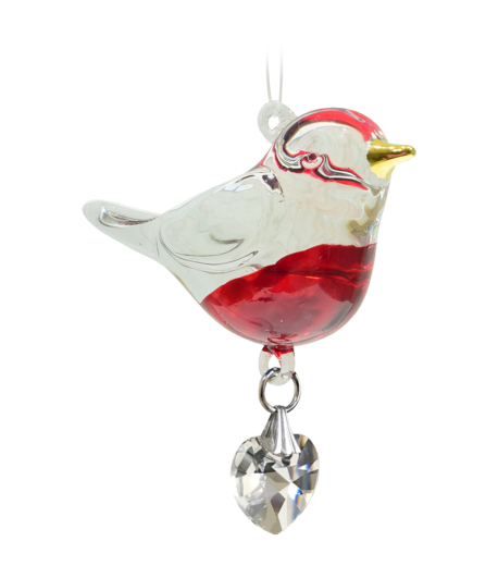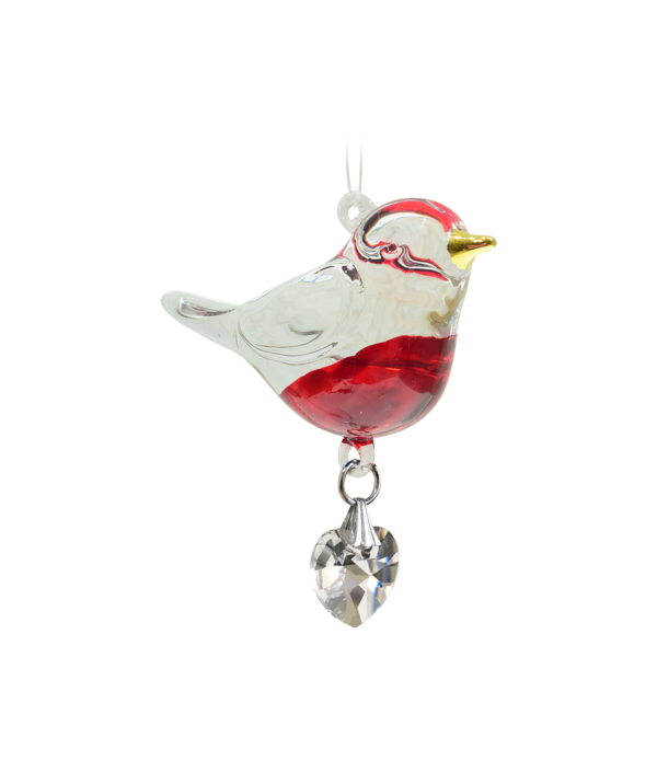 Hand Crafted Pretty Little Bird Glass. Embellished with a crystal heart and enhanced with 24 carat gold paint. Our Robin Pretty Little Bird is a Symbol of Renewal. Complete with an illustrated gift box.