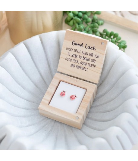 These beautifully crafted stainless steel and enamel earrings are made for everyday wear, combining lasting durability with a delicate shine. Presented in a gift-ready wooden box, they offer a playful yet heartfelt keepsake for any special moment. Inside, a cheerful message reads: