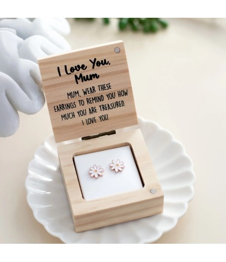 These beautifully crafted stainless steel and enamel earrings are designed for everyday wear, combining lasting durability with a soft, elegant shine. Presented in a gift-ready wooden box, they make a touching and luxurious keepsake for any occasion. Inside, a heartfelt message reads: