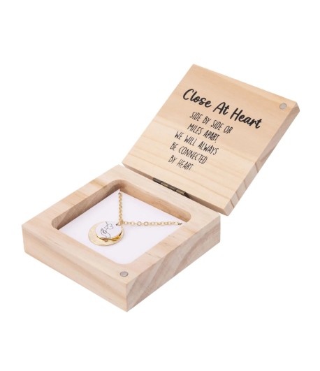 This graceful gold-plated necklace showcases a delicate, minimalist chain and arrives beautifully presented in a gift-ready wooden box, making it a thoughtful and luxurious keepsake for any special moment. Inside, a heartfelt message reads:
