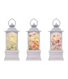 Bring charm and movement to your décor with these decorative lantern spinners. In 3 assorted designs, each lantern showcases a unique floral design featuring vibrant blossoms and delicate butterflies, crafted in a classic lantern style with a white finish. The soft LED light gently illuminates the scene, while the glitter spinner effect adds a magical, shimmering motion.