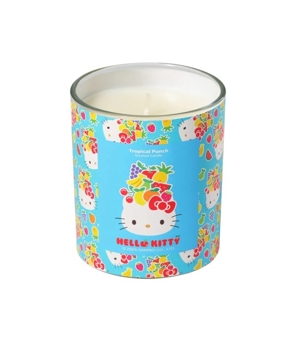 This Hello Kitty candle opens with a tropical burst of pineapple, mango, passionfruit and exotic fruits, instantly bright and energising. The heart is juicy strawberry, sweet caramel and ripe peach, adding rich sweetness. It settles into a creamy coconut and vanilla base.