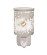 Illuminate your space with a touch of charm and nature-inspired beauty. This elegant ceramic plug in features a delicate cut out design of blooming flowers and a bee motif that glows warmly when lit. Perfect for adding a cosy ambiance to any room, its soft light brings both functionality and decorative appeal. The easy on/off switch ensures convenient use, making it a stylish and practical accent for any home décor.