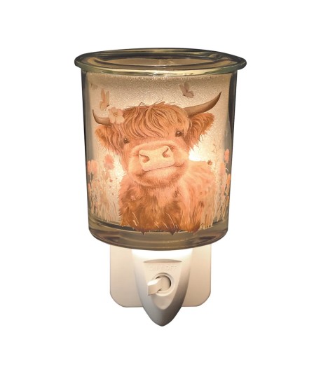 Add rustic charm and cosy fragrance to your home with this delightful highland cow glass Electric plug in Wax Melter. Featuring a beautifully illustrated countryside design, this piece combines artistic detail with relaxing aromatherapy to create the perfect homely atmosphere.