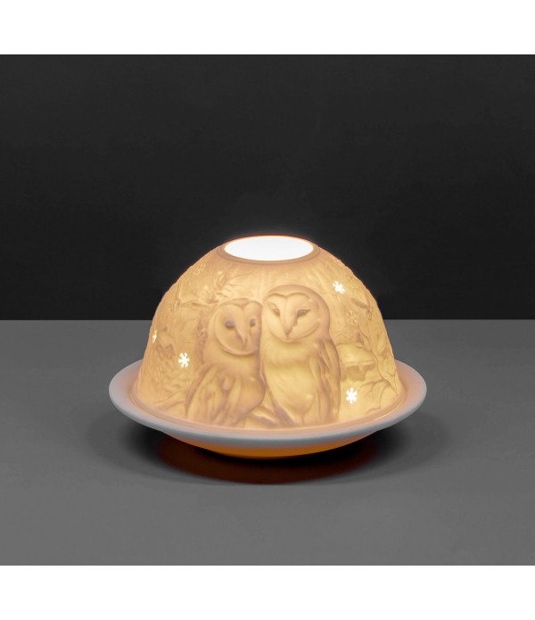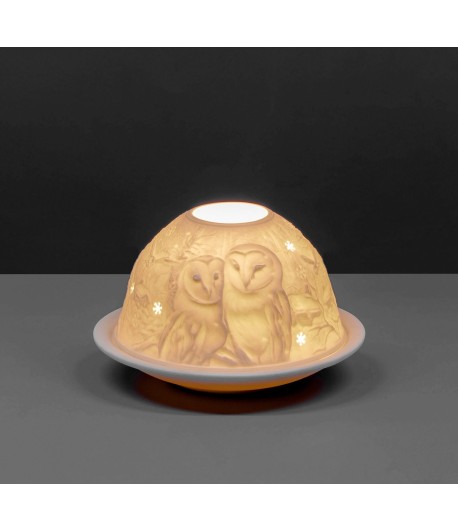 These cute little creatures with their distinctive heart-shaped face are known for their symbolism of wisdom. As it is lit up, it simply creates a cosy flair in any space especially when the perforated snowflakes spill the warm glow round the woods.