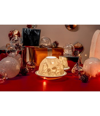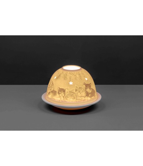 Candle holder featuring these adorable cats snuggling under the Christmas decoration.