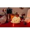 Consisting of a dome shaped cover with a ventilation hole on top and a plate to place the tealight candle;
