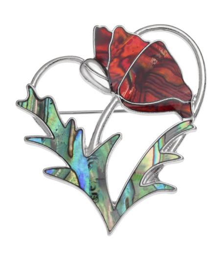 Poppy flower heart brooch