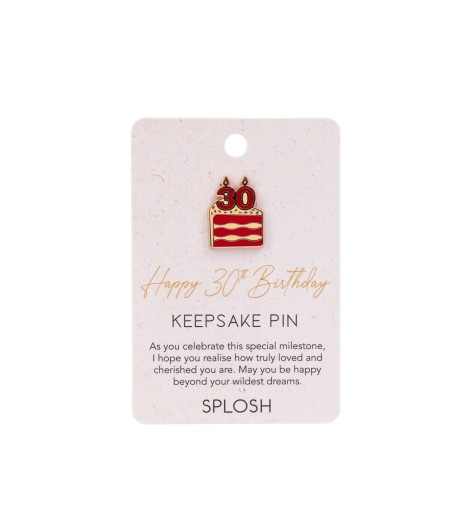 Introducing the Splosh Celebration Keepsake Pin - 30 — A thoughtful gift designed to make a lasting impact. Perfect for retailers seeking to enhance their collection with products that foster a strong emotional connection, this pin captures the significance of turning 30, a milestone that marks the transition into a new chapter filled with wisdom, accomplishments, and exciting possibilities.