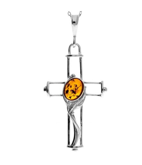 925 Sterling Silver & Genuine Baltic Amber Cross Pendant