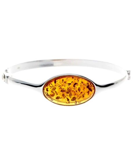 This is a Beautiful Amber and Sterling Silver Exclusive Bangle. The Bangle is set with Genuine Baltic Amber Stones (25x15 mm). It is stamped 925 Sterling Silver.