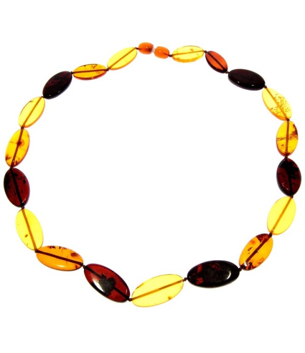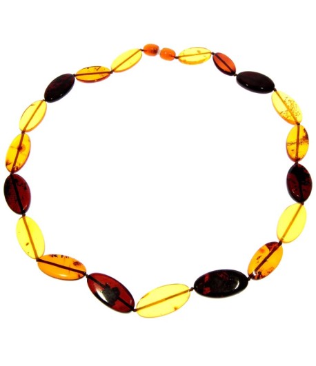 Genuine Mixed Baltic Amber Flat Oval Olive Beads Luxurious Necklace