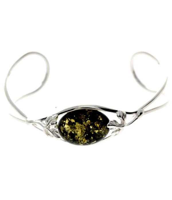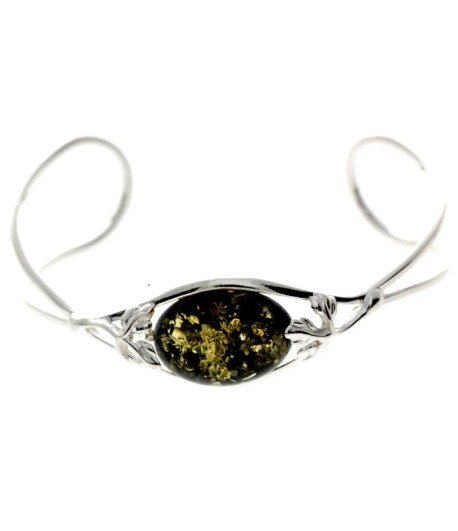 925 Beautiful Designer Silver Bangle with Baltic Amber