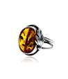 925 Sterling Silver & Genuine Cognac Baltic Amber Ring - Adjustable