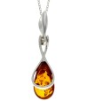 925 Sterling Silver & Genuine Baltic Amber Modern Drop Pendant