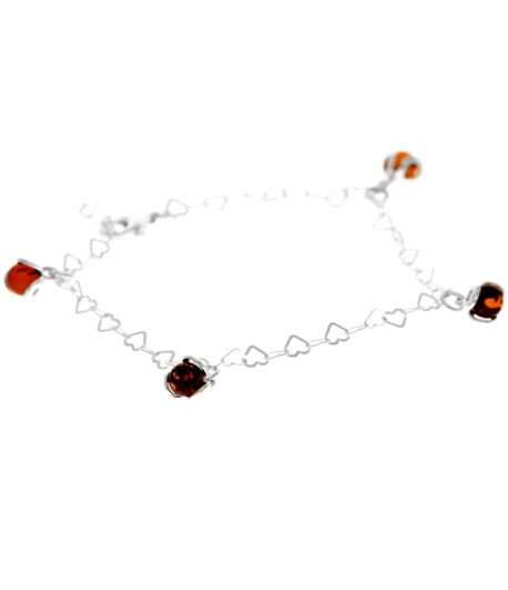 925 Sterling Silver & Genuine Baltic Amber Modern Adjustable up to 20 cm Hearts Bracelet