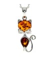 925 Sterling Silver & Baltic Amber Modern Cat Pendant