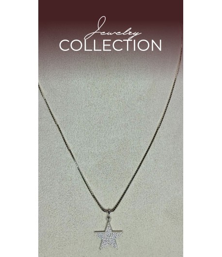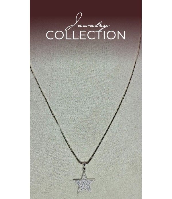 Sterling Silver Cubic Zirconia Pave Star Pendant & 16" Chain