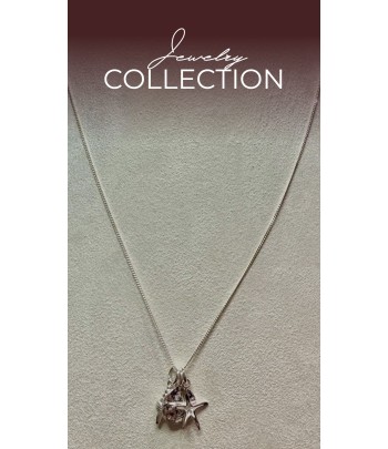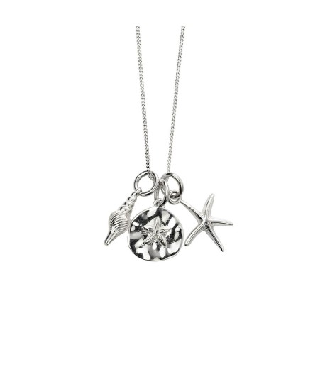 Get ready for a holiday with this stunning beach inspired necklace. Beautifully made in sterling silver, this necklace includes a small conch, sand dollar and starfish pieces. Ideal for the summer or a beach holiday!