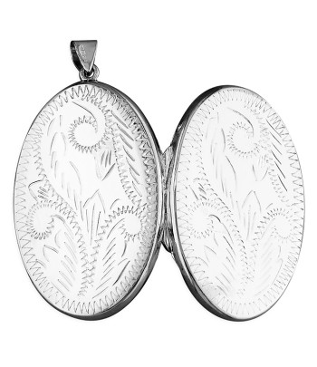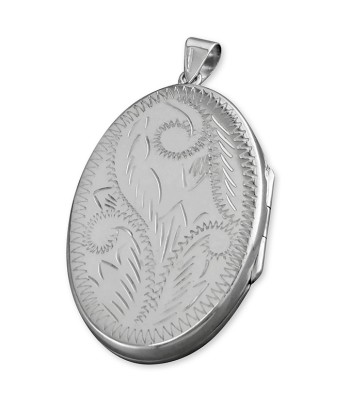 Sterling Silver Locket Large Oval Engraved & Chain 18"