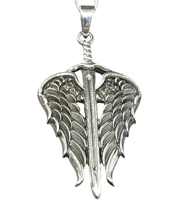 Sterling Silver St Michael Winged Sword Pendant & 22" Chain