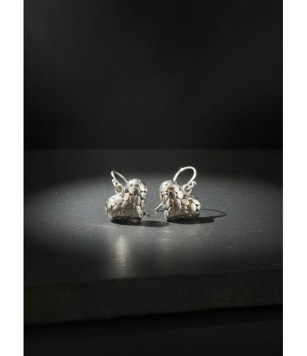 Sterling Silver Heart Set Cobblstone Earrings