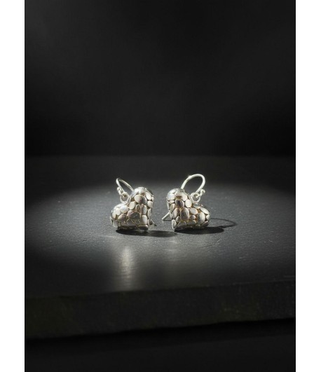 Sterling Silver Heart Cobblstone Earrings