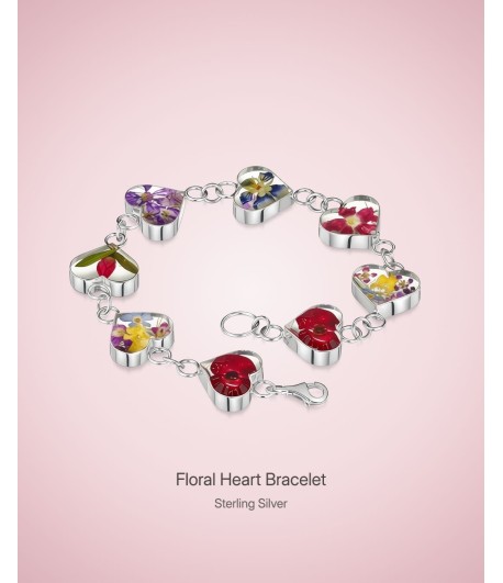 Sterling Silver Heart Bracelet Handmade With Real Flowers