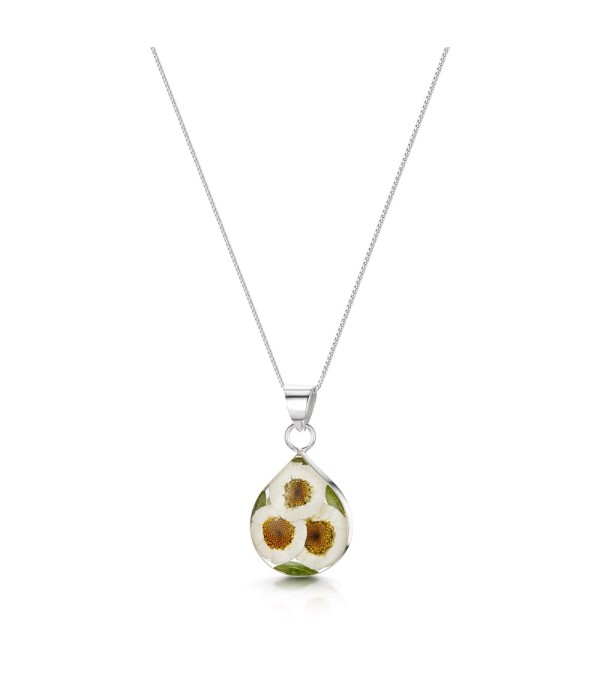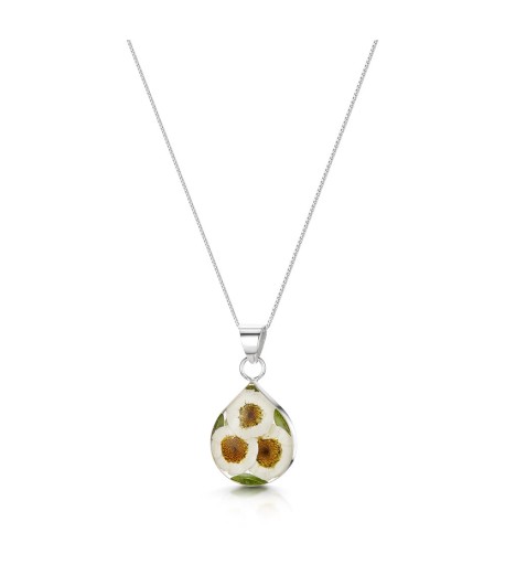 Immerse yourself in the delicate charm of nature with our Sterling Silver Teardrop Pendant Necklace, featuring real daisies encapsulated in a sleek and elegant design. Each daisy, handpicked for its unique beauty, is carefully preserved within a crystal-clear teardrop pendant, creating a timeless piece that brings the serenity of nature close to your heart.