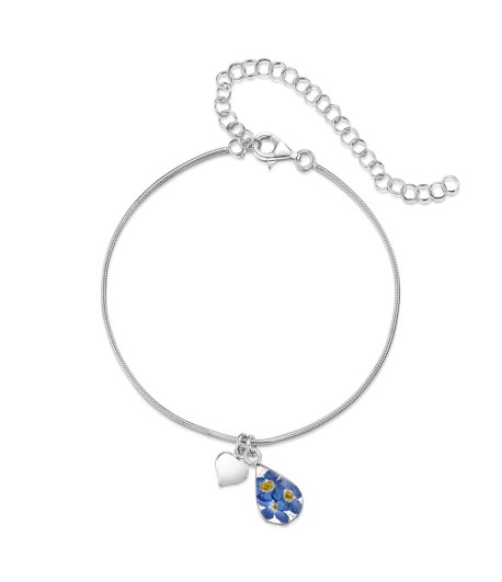Sterling silver snake anklet/bracelet - Teardrop - Forget Me Nots